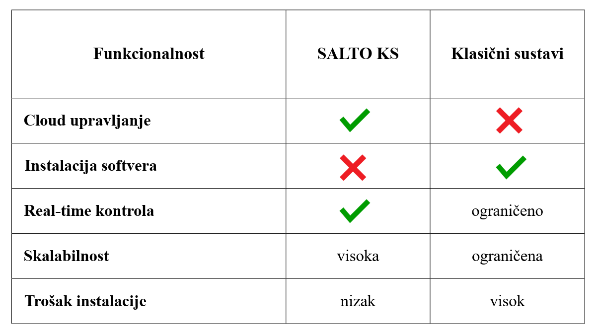 Za razliku od sustava poput ASSA ABLOY, Dormakaba ili Honeywell rješenja, SALTO KS: